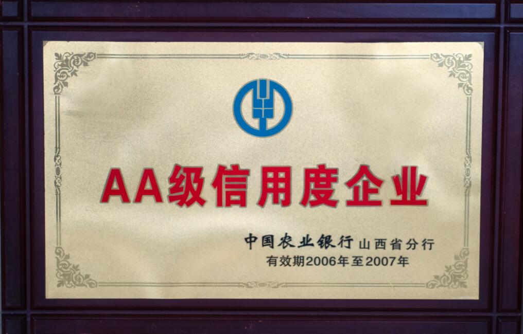 山西省質量信譽A級企業(yè)